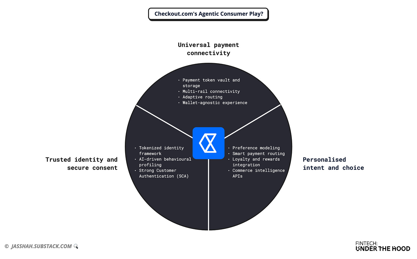 šŖŖ Identity and Authorisation: For agents to transact autonomously, identity, consent, and trust frameworks need to evolve. PSPs already sit at a critical junction of authentication and authorisation, verifying cardholders, merchants, and transaction intent. As AI agents begin to make purchases or negotiate subscriptions on behalf of users, companies like Checkout.com are well-positioned to manage this next layer of identity infrastructure, combining tokenization, biometrics, and behavioural signals to ensure every transaction is verified, secure, and compliant.
